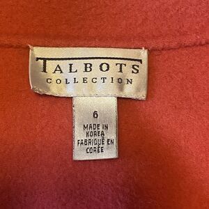 This vintage Talbots jacket is a must-have for any business professional's wardrobe. The delicate pink color and wool blend material make it a timeless piece that can be dressed up or down. The open concept design allows for versatile styling options and the size 6 fits comfortably for a regular size type.