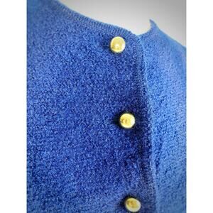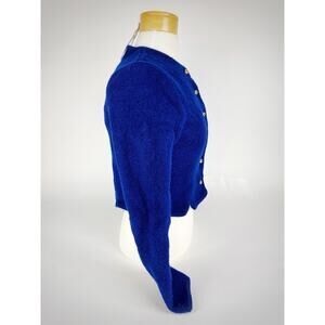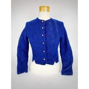 VTG Tally Ho Jacket 100% Wool Button Up Blue Cardigan Women Sz 8 Cropped Preppy
