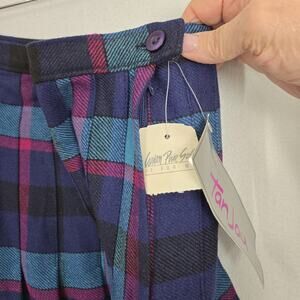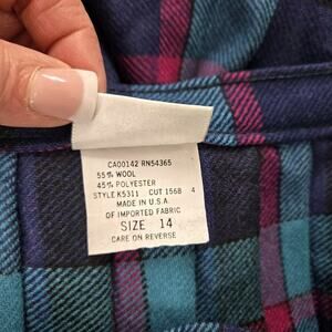 Vtg Tan Jay Wool Blend Pleated Plaid Skirt Sz 14 Blue Teal Pink Preppy Academia. Unlined