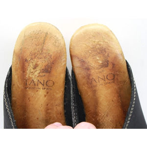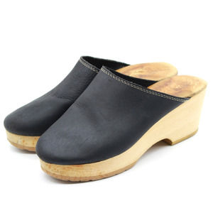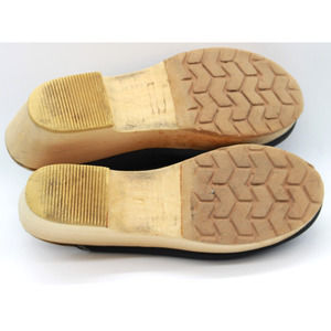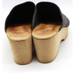 VTG Tano Womens Suki Leather Platform Wood Clogs Black Made In Spain Size 8