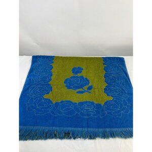 VTG Tastemaker Mohawk Bathroom Towel Roses Avocado Green & Royal Blue Retro