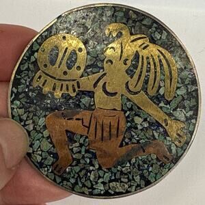 VTG Taxco Mexico Sterling Silver Copper Brass Turquoise Mosaic Pin Pendant CHC