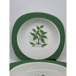 Taylor Smith Taylor, vintage bowl plate set, green rim dinnerware, rustic tableware, farmhouse dishes, tree motif china, TST pottery, collectible ceramics