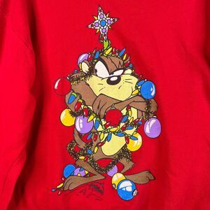 VTG Taz Looney Tunes Sweatshirt Men Large Ornaments Red Pullover Sweater Jerzees