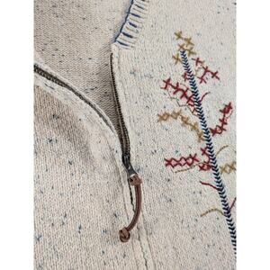 VTG Teddi Knit Sweater Vest Granny Cottage Core Fall Leaf Artsy Embroider Nature
