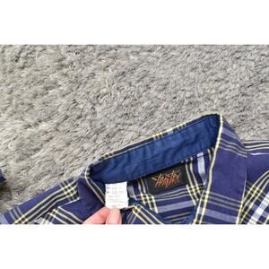 VTG Tem Tex Western Made in USA Men Blue Plaid Casual Cotton Snap Shirt 17.5 36