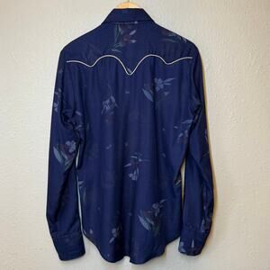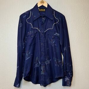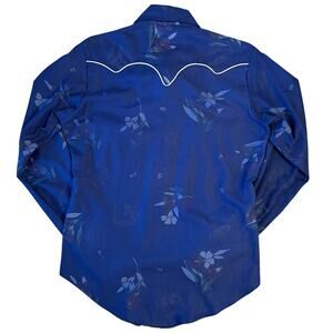 VTG Tem Tex Western Shirt Floral Pearl Snap White Piping Blue 70s Women’s Medium
