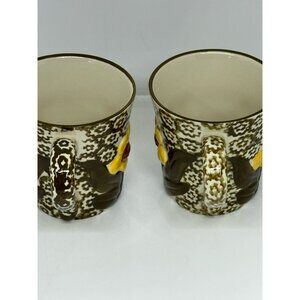 Temp-Tations mugs, Old World coffee mugs, vintage kitchenware, floral mugs set, green yellow mugs, collectible Temp-Tations, retro coffee mugs, stoneware mugs, Temp-Tations Old World, pair of coffee mugs