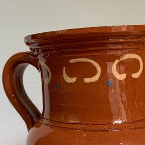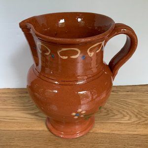VTG Terracotta Pitcher Hand Painted Sangria Rustic Vase Wine Water Jug Folk Art
