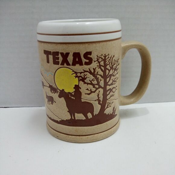 I have a VTG Texas Beer Stein Mug Ceramic Tankard - State Flag, Cowboy, Longhorn Steer