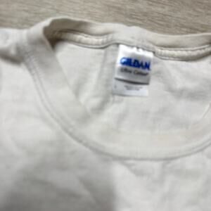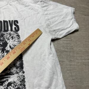 The VTG The Bonedaddys Funk Rock Band Shirt for men in size L is a white, solid color T-shirt featuring a crew neck and short sleeves. Made from 100% cotton fabric, this regular fit shirt is perfect for casual occasions. The graphic tee style with a rock and music theme makes it a stylish and comfortable addition to any man's wardrobe. With the Gildan brand and solid construction, this shirt is sure to be a standout piece for any fan of classic rock bands.