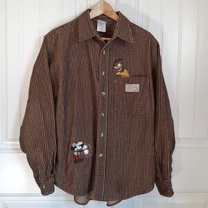 VTG The Disney Store Brown Corduroy Pluto and Mickey Pocket Button Down Shirt