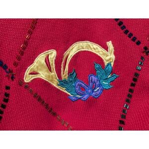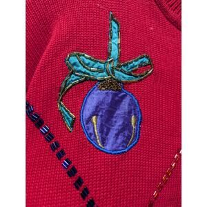 VTG The Eagles Eye Ugly Red Christmas Sweater Turtleneck Size S Beaded Holiday