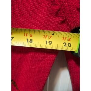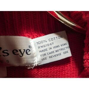 The VTG The Eagles Eye Ugly Red Christmas Sweater Turtleneck in size S is a vintage piece featuring intricate beading and embroidered accents, perfect for the holiday season. Made from 100% cotton in a chunky knit style, this pullover sweater is adorned with a festive multicolor Christmas pattern, making it a standout piece for any party or casual occasion. The turtleneck design and long sleeves provide warmth during the winter season, while the hand wash only care instruction ensures easy maintenance. Showcasing a blend of retro style and holiday cheer, this sweater by Eagles Eye is a cozy and stylish addition to any Christmas wardrobe.