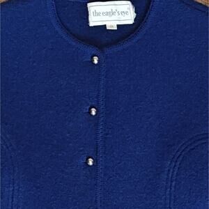 VTG The Eagle's Eye Worsted Wool Cardigan Sweater Women's 12 Gold Buttons Blue