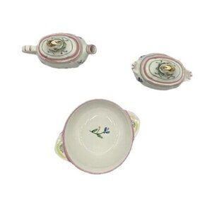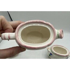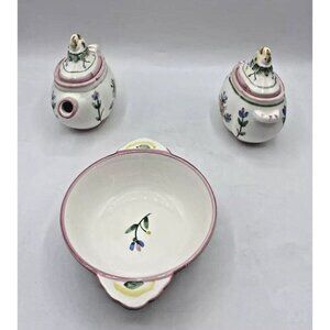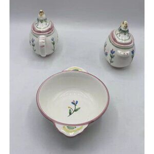 VTG The Haldon Group BUNNY RABBIT FLORAL Ceramic Sugar Creamer Bowl 1990 Cottage In Very Good Pre-owned Condition. One small chip on the inside of one of the lids. No cracks or stains.