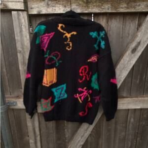 VTG The Limited FORENZA black v-neck Cardigan SWEATER Size small bright colors