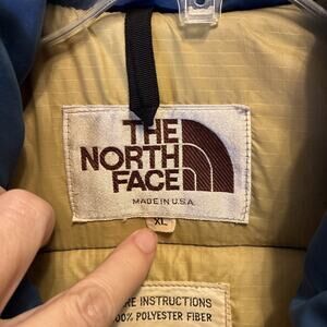 VTG The North Face Down Jacket XL Blue-BROWN Made In The USA Label 70s TALON ZIP