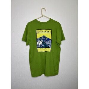 Please see all images for best item description. Great throwback The North Face Mt. Everest green t-shirt in men's size medium with large back graphic. Note: some distressing/cracking on the back print - please see pictures. Measures 21.5" flat across pit to pit, and 28" collar to bottom. Any questions please ask!