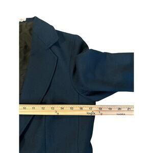 Step into timeless heritage style with this authentic vintage wool blazer. Crafted in Scotland from 100% pure new wool, this navy blazer features a structured two-button closure, notched lapels, front patch pockets, and a fully lined interior. A versatile piece that works for business, academia-inspired outfits, or layered with denim for a chic preppy vibe.