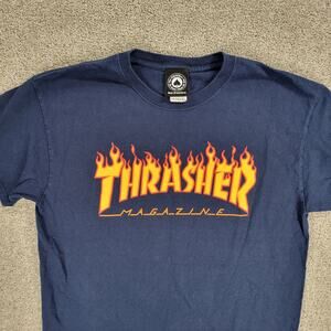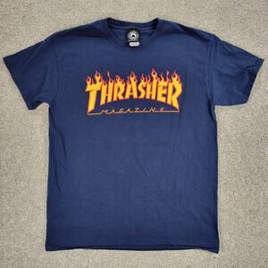 VTG Thrasher Magazine Unisex Navy Blue Flame Logo Skateboard Graphic Print Crew neck T-shirt Size M Product Description: Measurement: 20" pit to pit x 27" long Condition: Excellent Pre-Owned Brand: Gildan Size: Medium Color: Navy Blue Material: 100% Cotton - Machine Wash, Tumble dry - Pull On - Crew Neck - Graphic Print Thanks for shopping with me today!! I ship on orders received by 3pm each day USPS is open. Most items are lovingly used so may show appropriate signs of wear but are clean and stored in a smoke free environment. I do my best to make note of any irregularities with an * but please feel free to inquire:)