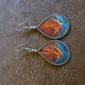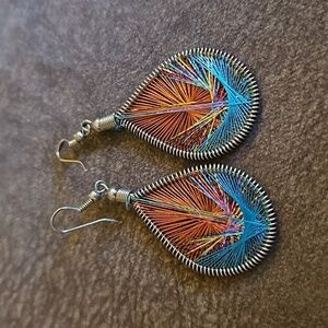 VTG Threaded Spirograph Teardrop Metallic Dangle Hook Earrings