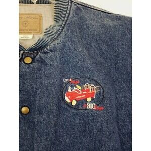 VTG Three Rivers Authentic Denim Jacket Little Tots For BIG Boys Mens Sz. L Blue