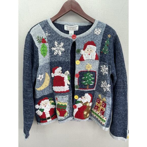 VTG Tiara Christmas Cardigan Sweater Womens L Cottagecore Grandma Holiday Knit
