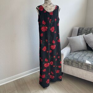 VTG Tickets Dress Maxi Black Large Rose Romantic Whimsigoth Y2k Classic