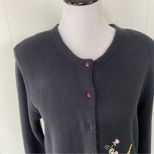 VTG Tierra International Sweater Black Embroidered Floral Knit Cardigan Size M