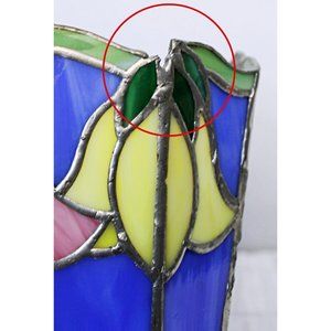 VTG Tiffany Style Stained Glass Tulips Flower Vase Waste Basket Multi Use Decor