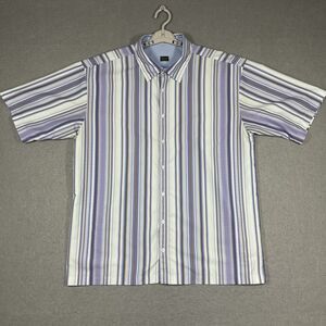VTG Tiger Woods Shirt Mens XL Purple Blue Stripes Retro Short Sleeve Button Up
