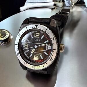 VTG Timex Dive Watch Womens Black Multi-Direction Bezel Manual Wind 31mm RUNS