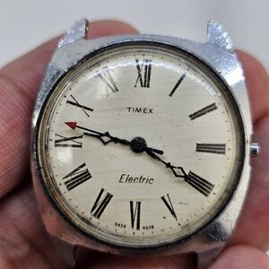 VTG Timex Electric Men's Watch 34MM White Dial Roman Numerals SELLING FOR PARTS