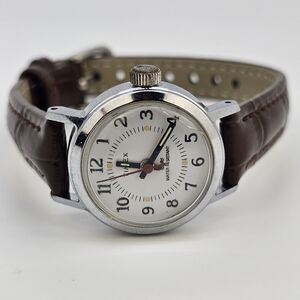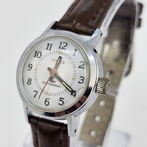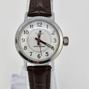 VTG Timex Women Watch Mechanical 25MM White Dial New Brown Leather Bands WORKING