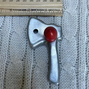 VTG Silver & Red Axe cookie cutter wooden red knob. Tomahawk aluminum form