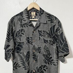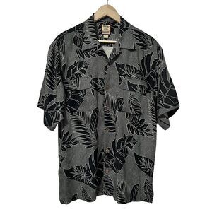 VTG Tommy Bahama Floral Silk Button Shirt Size M Black Vacation Tropical - LOGO
