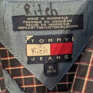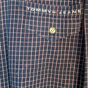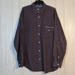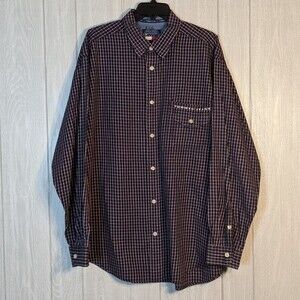VTG Tommy Hilfiger Checker Pattern Long Sleeve Button Front Shirt EUC Flag SZ XL