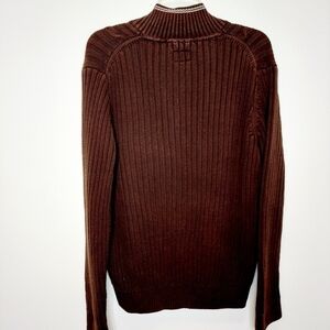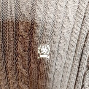 VTG Tommy Hilfiger Crest Quarter Zip 1/4 Sweater Large Brown 100% Cotton.