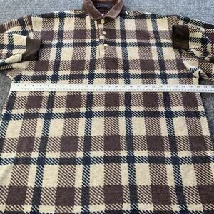 VTG Tommy Hilfiger Fleece Sweater Mens Large Relaxed Fit Corduroy Collar Plaid