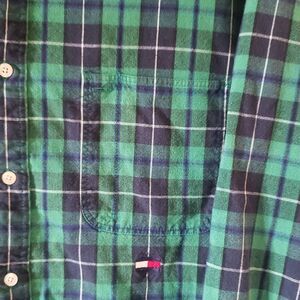 Description: Tommy Hilfiger XL green plaid button-down Y2K shirt, long sleeve.