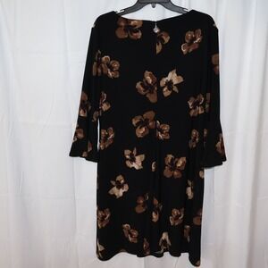 VTG Tommy Hilfiger Midi Dress Sz 16 3/4 Bell Sleeves Brown Floral Hidden Zipper
