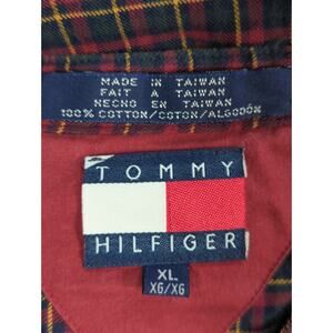 Add a touch of classic style to your wardrobe with this vintage Tommy Hilfiger plaid button-down shirt! Made from 100% cotton in Taiwan, this men's XL shirt features a timeless plaid pattern that's perfect for casual wear or dressing up.