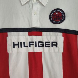 VTG Tommy Hilfiger Rugby Shirt Men's L Red/White/Blue Patch, Embroidered Details