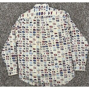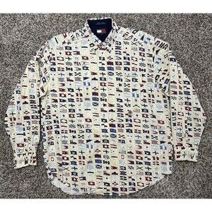 VTG Tommy Hilfiger Shirt Mens Medium Yellow Sailing Flags Button Front Oversized