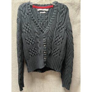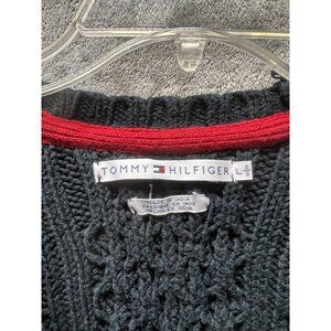 VTG Tommy Hilfiger Sweater Women’s L Navy Blue Cable Knit Cropped Cardigan Y2K