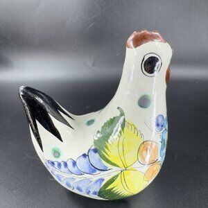 VTG Tonala Mexico Folk Art Pottery Chicken Rooster Hand Painted Figurine Signed