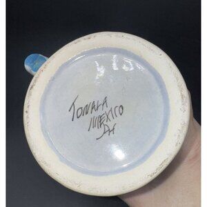 VTG Tonala Mexico Hand Painted Blue Bird & Flowers Pottery Mug Cup Stein 23oz