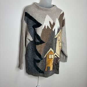 VTG Tony Lambert Womens medium Brown Tunic Sweater house graphic Silk blend y2k rabbit hair