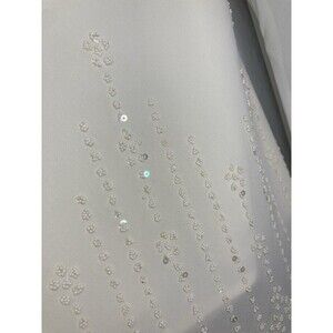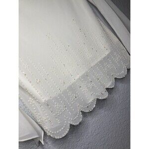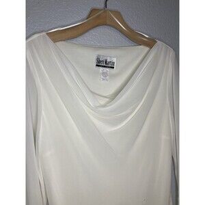 VTG Top Blouse Womens M Beaded Scallop Ivory White Sheer Sleeve Lined Cowl Neck